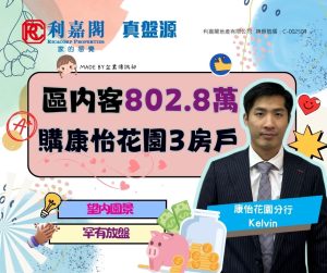 區內客802.8萬購康怡花園3房戶 業主持貨近15年 易手帳賺242萬