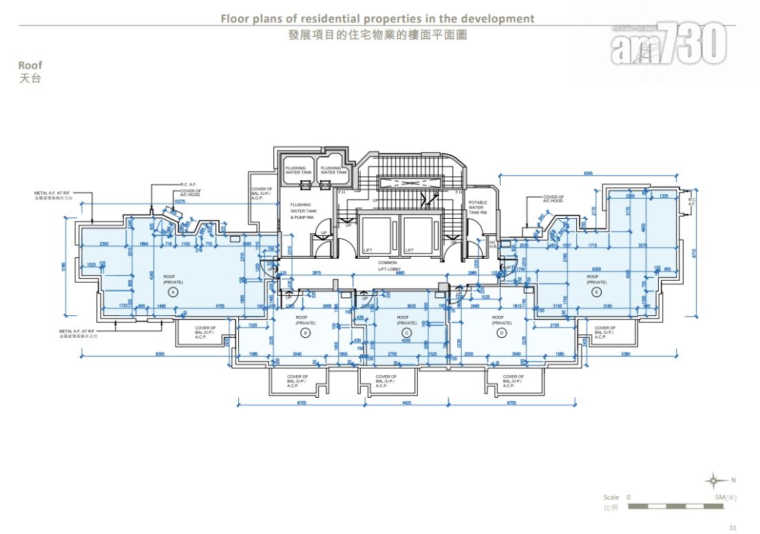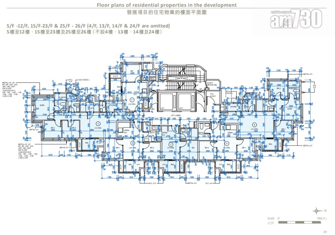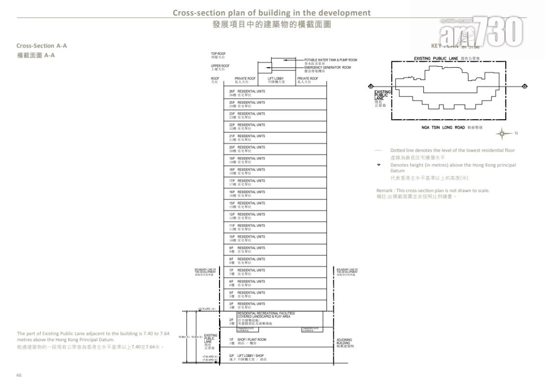 全盤面積最細為3樓C室,實用面積244方呎,屬一房(開放式廚房)間隔;全盤面積最大為26樓A室,實用面積607方呎,連467方呎天台,屬三房一套+儲物室連洗手間間隔。