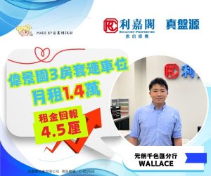 利嘉閣地產元朗千色匯分行助理分區經理朱子華(Andy)稱,該行物業顧問梁宏鍵(Wallace)最新促成洪水橋偉景園1座低層B室連車位的二手租賃成交個案,單位實用面積約774方呎,屬3房1套間隔,外望開揚景觀。
