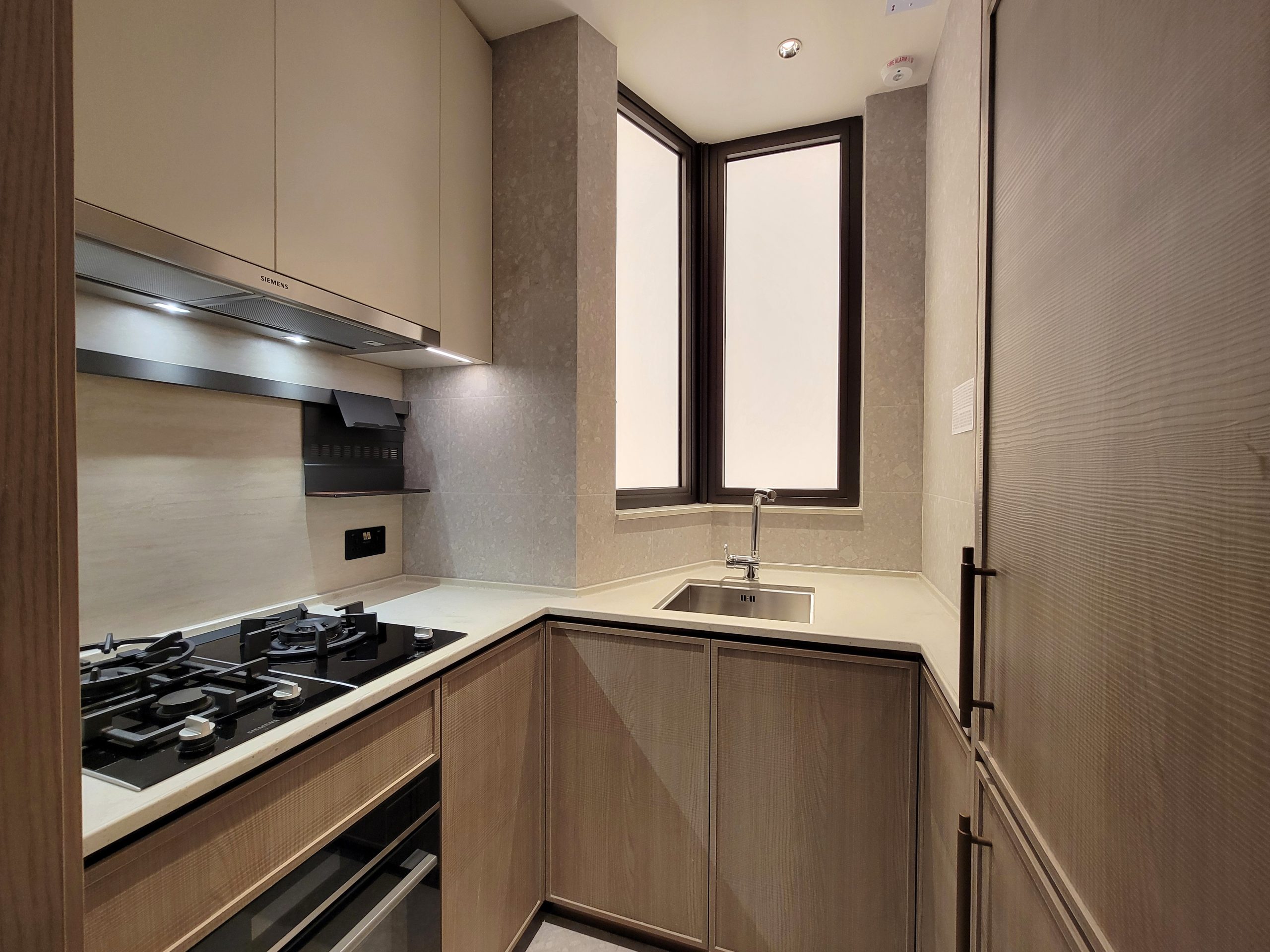 露台及工作平台門以落地玻璃門設計,將室內空間無縫延伸至戶外露台及工作平台,引入充足自然光,開揚景致一覽無遺。露台及工作平台設有多功能 BALCONY+,配備洗衣乾衣機,並預留空間放置小型家電,更設有防雨趟閘。露台及工作平台亦備有MAGIC HANGER,兩組自家設計晾衣杆,每支承重量高達5公斤,可隨心轉換固定於不同位置,方便晾掛衣物。露台及工作平台壁燈 House Light用上金屬流線形設計,將前衛格調延伸至室外。廚房為梗廚設計,提供充裕的備餐空間,配置德國名牌家電,包括煤氣煮食爐及蒸焗爐等,讓住戶能盡情發揮廚藝創意,享受入廚樂趣。