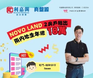 利嘉閣地產屯門-珀御分行高級經理陳志偉(Joe)稱,該行物業顧問蕭文滔(Steven)最新促成屯門NOVO LAND 2A期3座高層F室的二手租賃成交個案,單位實用面積約413方呎,屬2房連開放式廚房間隔,望開揚景。