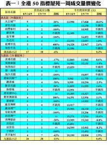 至於,新界區21個指標屋苑上周共錄35宗買賣,較前周的36宗減少3%,其中大興花園及映灣園分別錄得1宗及2宗交投,各自按周減少50%;沙田第一城交投量由前周的9宗,減少44%至上周的5宗;嘉湖山莊期內錄得4宗買賣,較前周的5宗減少20%。此外,在全港50個指標屋苑之中,上周共有16個屋苑錄得「零成交」,與前周的數字相同,當中港島區及九龍區分別佔3個及5個屋苑,新界區則佔8個(詳見表一)。