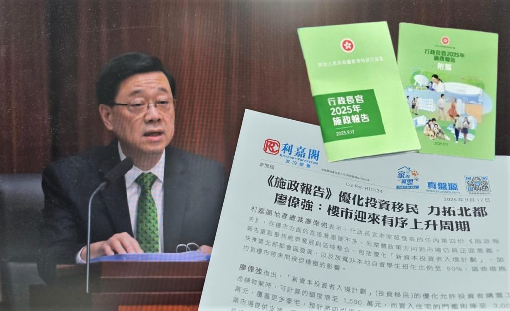 利嘉閣地產總裁廖偉強表示,行政長官李家超發表的任內第四份《施政報告》,在樓市方面的直接著墨雖不多,但整體政策方向對市場仍具正面意義。報告重點聚焦經濟發展與區域整合,包括優化「新資本投資者入境計劃」、加快推進北部都會區發展,以及放寬非本地自資學生招生比例至50%,這些措施均對樓市帶來間接但積極的影響。