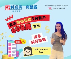 外區客見減息 決心覓筍盤上車 斥608萬購青衣青怡花園3房套戶