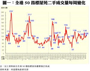 陳海潮指出,踏入十月份黃金周假期,訪港旅客上升,市面零售消費市道好轉,即使中秋假期,一手交投亦見理想,印證整體樓市穩步回升,相信熱鬧市況會逐步感染二手市場,帶動二手指標屋苑同步造好,料未來兩周的指標屋苑交投量均可在百宗水平左右高位徘徊。