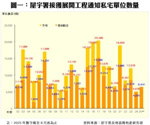 此外,私人住宅落成量方面,根據屋宇署今日最新發表的資料月報顯示,2025年八月份全港共有1個項目,合共592個私人住宅單位落成(以屋宇署發出佔用許可證的樓宇數量為準),較七月份的1,695伙減少65%;至於今年首八個月累計共12,351伙私宅落成,較去年同期的9,624伙增加28%,為三年同期最多。
