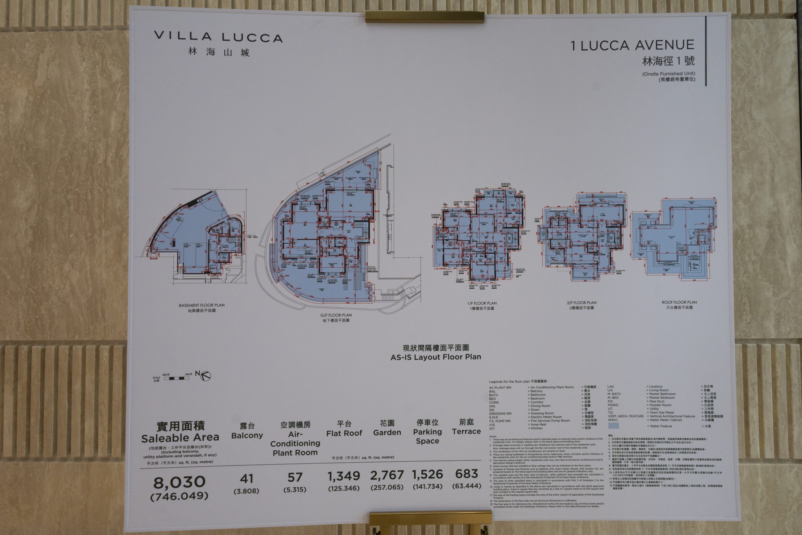 林海徑1號洋房為全盤實用面積最大之尊貴大屋,樓高三層,六房六套間隔,實用面積 8,030方呎,設2,767方呎花園、683方呎前庭、1,349方呎平台及1,526方呎車庫。透過精緻細節和空間軸線的運用,配合山海林全景的獨特視覺美感,營造出山海私人會所式奢華生活。這座三層高的大宅由綠蔭環抱,設計師via.巧妙融合室內設計與外在環境的融和,從車庫走到天台仿如穿梭叢林、登上山峰之巔。地面層正門映入眼簾是樓高兩層的門廳 (約7米),青銅飾面大門帶有横直紋效果,兩側波浪紋玻璃既保持私隱的同時,又將戶外的觀景水池及花園小徑隱約延展入室。