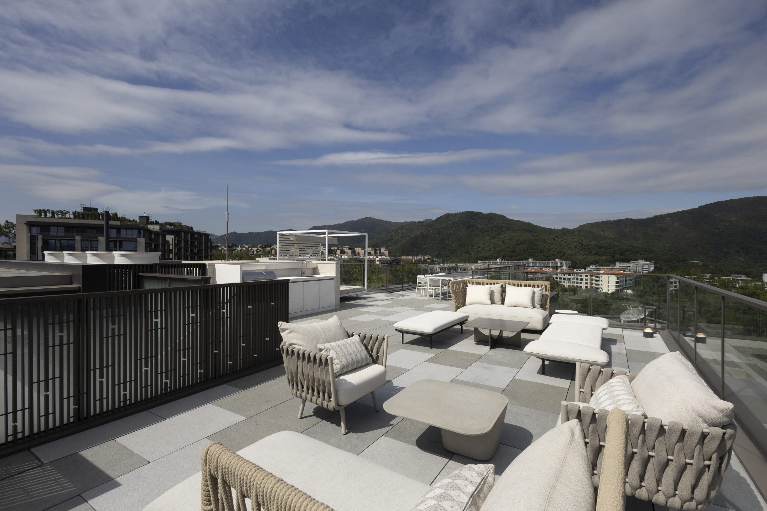 天台花園約1,349方呎,設燒烤設備、十人餐桌及曬浴場。居高臨下,盡覽船灣淡水湖與吐露港雙重美景,詮釋從容度假美學。