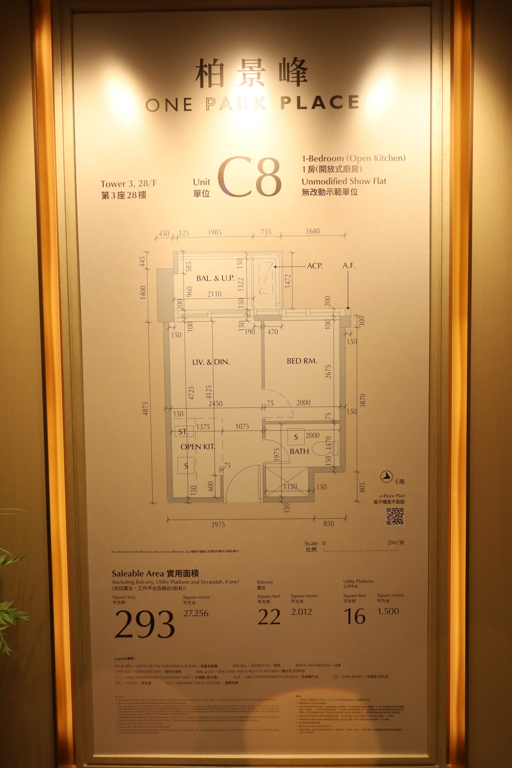 由信和置業、資本策略地產及港鐵合作發展的油塘新盤「柏景峰」設有一房無改動示範單位予公眾參觀,以第3座28樓C8室為藍本搭建,實用面積293方呎,一房連開放式廚房設計。