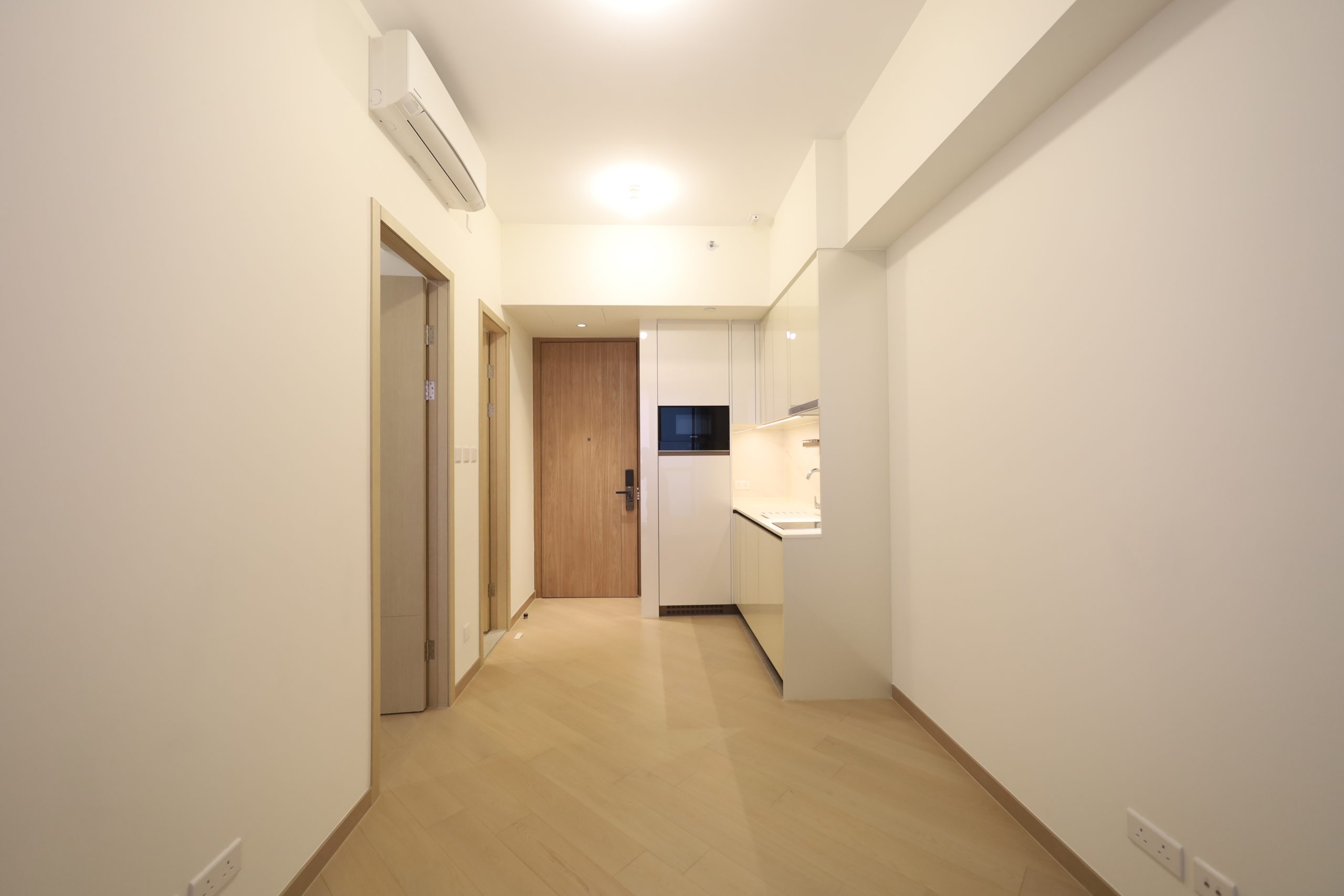 單位層與層之間高度為3.3米,空間感十足。大門採用Lockly智能電子門鎖,配備專利級防偷窺視密碼鍵盤等多種功能。客飯廳採用複合木地板,長形開則,設落地玻璃窗趟門,更特意將單位露台及工作平台結合,實用面積達38方呎,住戶可更靈活運用露台及工作平台空間。