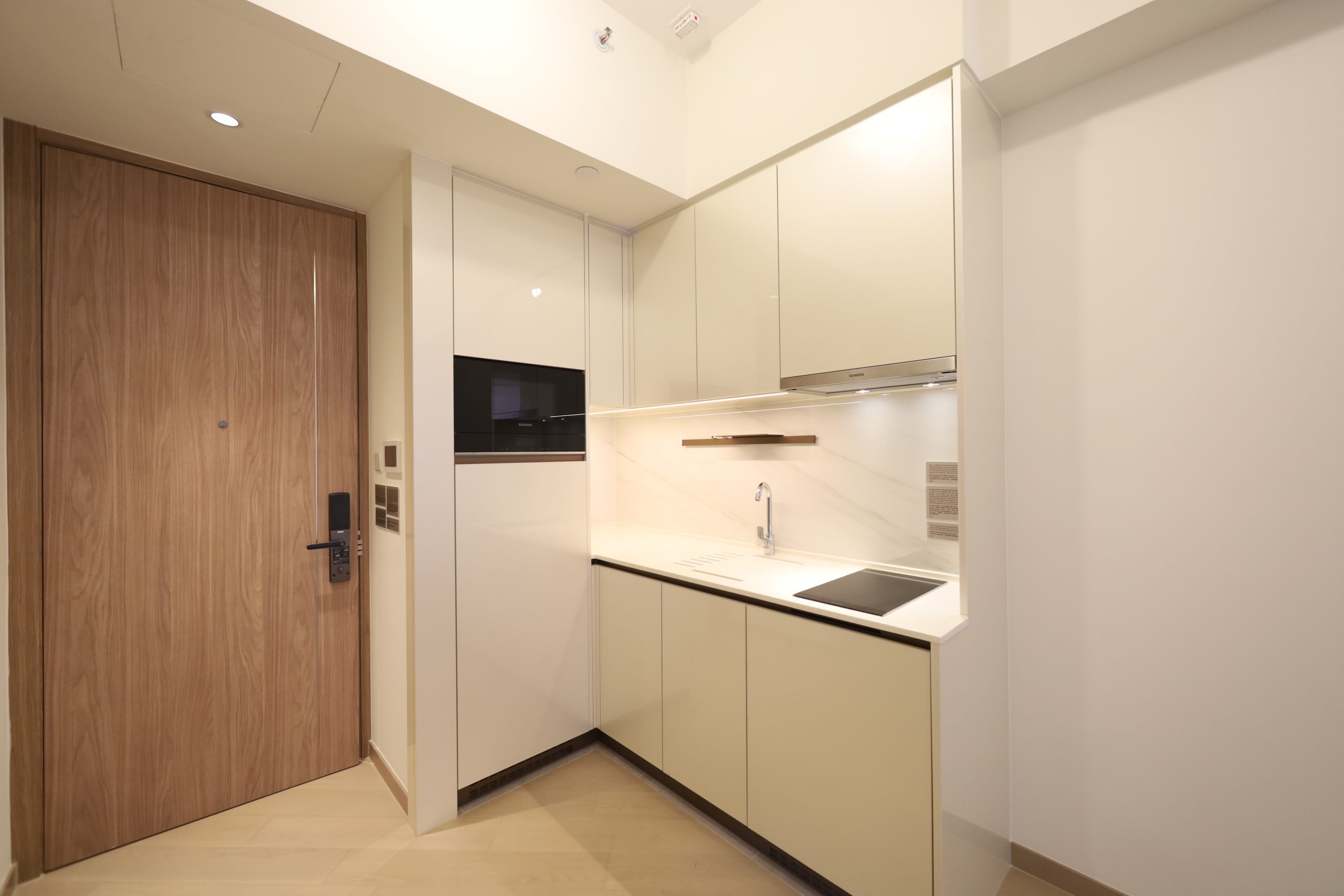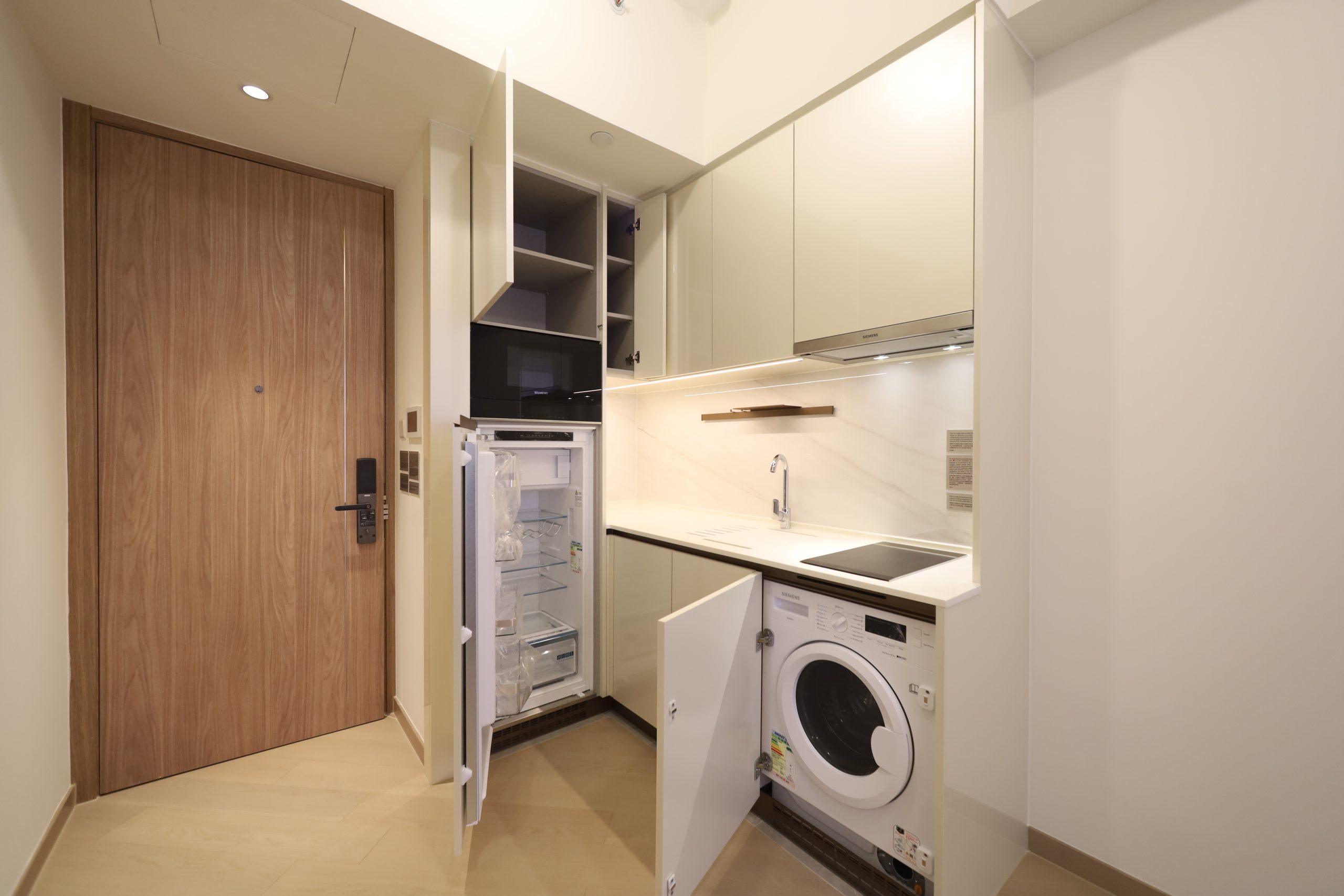開放式廚房以曲尺形設計,設有上下兩組吊櫃及地櫃,並配備一系列Siemens家電,包括嵌入式微波燒烤爐、單門雪櫃、電磁爐、抽油煙機及洗衣乾衣機,設備一應俱全。