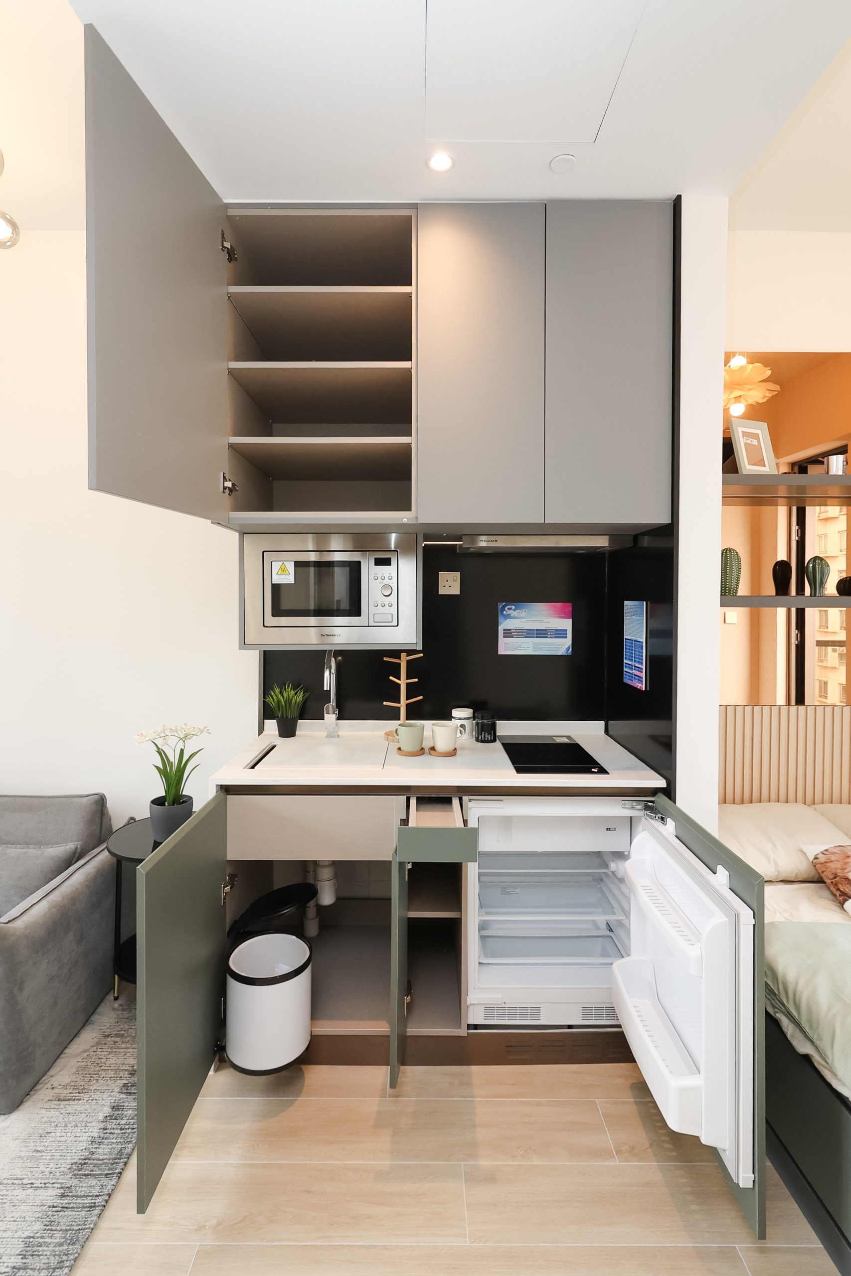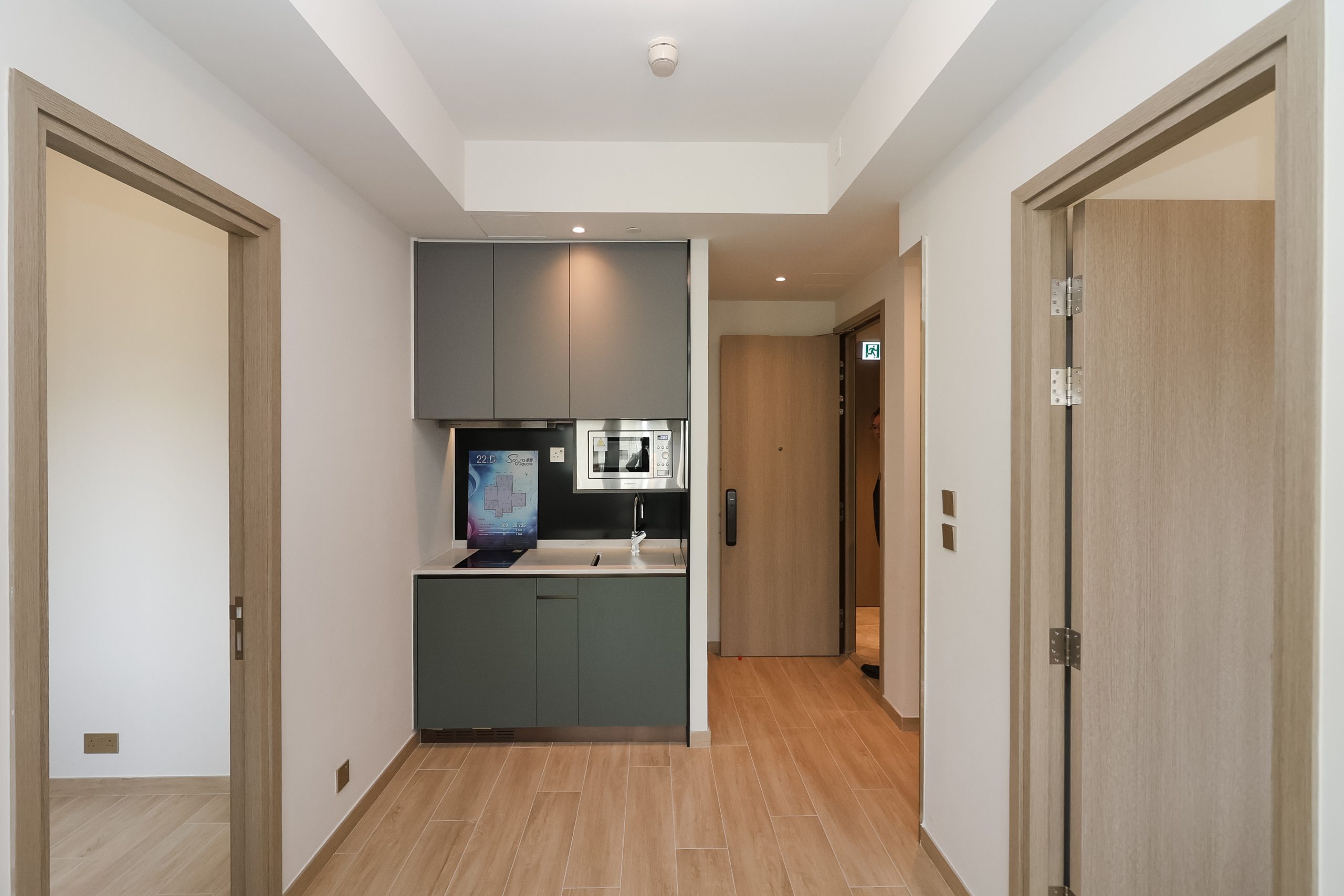 實用面積為237方呎,客飯廳採用長型佈局,最長處長約5.25米、最闊處闊約2.3米,開則上以開放式廚房巧妙劃分功能區,只要將傢俬靈活擺放即可製成客飯廳與睡眠區域,將單位變成儼如一房功能使用,睡眠區甚至可以三邊落床,住戶可因應個人喜好自由規劃。單位左右兩側分別連接22方呎露台及16方呎工作平台,形成雙向自然對流,空氣流通,令整體空間更顯開揚。