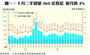 利嘉閣地產研究部主管陳海潮表示,現時樓市逐漸「企穩」,不論一手發展商抑或二手小業主都緩步提價放盤;而另一邊廂香港銀行跟隨美國減息,亦會增加市民入市的誘因。根據土地註冊處最新數據顯示,十月份全港錄得360宗居屋二手買賣登記(數字主要反映九月中旬至十月上旬居屋第二市場及自由市場市況),較九月份的375宗按月減少4%;至於期內成交總值錄約14.52億元,較前月的14.78億元,按月減少約2%。