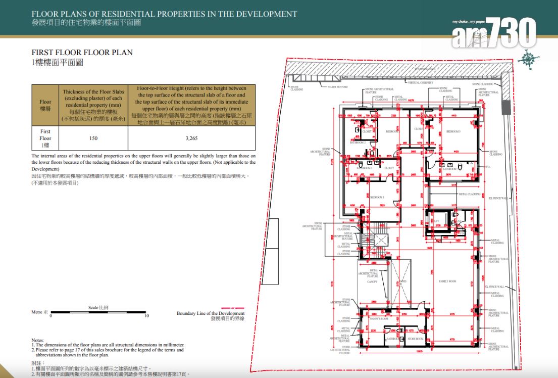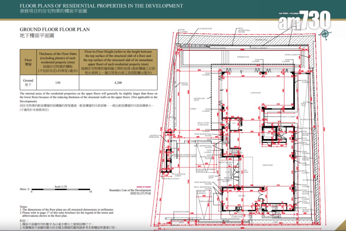 根據樓書顯示,該大屋屬六房連套房設計,設4,796方呎花園、3,244方呎天台;另設有294方呎前庭、1,075方呎庭院以及116方呎梯屋。