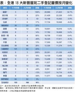 18大新晉屋苑十月登記193宗 終止三連跌