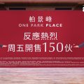 「柏景峰」首輪銷售截收逾4,500票,超額認購逾29倍。開售的150伙全數為標準單位,包括27伙一房(開放式廚房)、120伙兩房(開放式廚房)、3伙三房一套(開放式廚房)+儲物室。如選用120天付款計劃,扣除15%最高折扣優惠後,最低售價單位為3座6樓C8單位,實用面積293方呎,一房(開放式廚房)間隔,折實價427.46萬元,呎價14,589元。最低呎價單位為1座6樓A9單位,實用面積370方呎,兩房(開放式廚房)間隔,折實價499.97萬元,呎價13,513元。