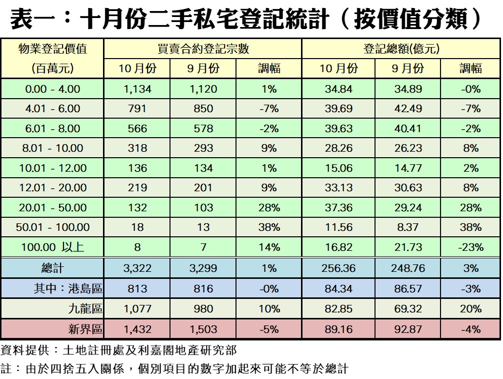 十月二手私宅登記3,322宗 連升兩月 連續7個月旺市 本月看3,400宗