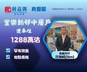 據悉,原業主在2024年以約1,000萬元買入單位,持貨至今易手,帳面獲利約288萬元,期內物業升值約29%。