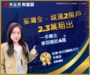利嘉閣地產荃灣-映日灣B組分行經理李晓敏(Suki)表示,該行客戶主任林佩莹(Linda)最新促成荃灣全·城滙1座中層C室的二手租賃成交個案,單位實用面積約525方呎,現採2房間隔,望內園。