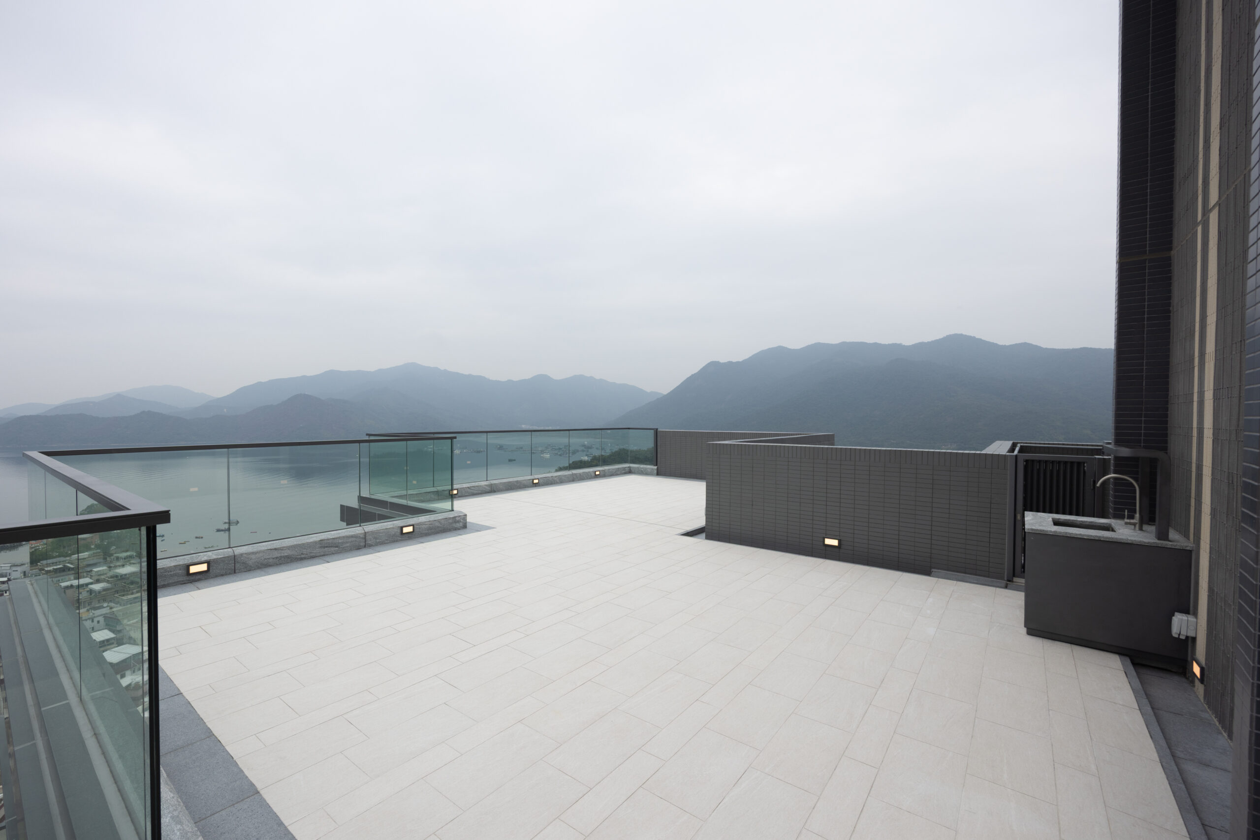 單位層與層之間的高度最高為4米,極具空間感,盡顯大宅氣派。單位坐享約 270度廣闊山海自然景致。客飯廳由大門起計最長約9米,最闊可達逾5米,巨型方正,空間分明且闊落,住戶擺放各式大型家具後仍有充裕活動空間。全屋以淺木色為主調,提升室內明亮度。大廳坐擁雙邊美景,配合落地玻璃,戶外景致一覽無遺。一邊望向大埔一帶的山脈海灣,另一邊則可觀賞由深涌至榕樹灣的連綿山海景致,同時亦可外望「西沙 GO PARK」與「GO PARK Aqua」。客廳趟窗設計獨具匠心,以兩組極罕見全開式無中柱落地玻璃趟門連接戶外630方呎特大平台。而由平台沿樓梯拾級而上,即可到達面積廣達950方呎的私人天台。