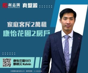 利嘉閣地產太古康怡區康怡花園分行聯席董事陳家豪(Ryan)稱,該行高級資深客戶董事鄭棋元(Kelvin)新近促成鰂魚涌康怡花園N座低層8室的二手租賃成交個案,單位實用面積約490方呎,採2房間隔,外望市區景。