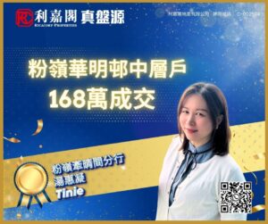 利嘉閣地產粉嶺牽晴間分行高級經理羅富欽(Arthur)稱,該行客戶董事湯惠凝(Tinie)最新促成粉嶺華明邨信明樓中層27室的二手成交個案,單位實用面積約147方呎,屬開放式間隔,望內園。