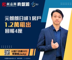 利嘉閣地產元朗千色匯分行助理分區經理朱子華(Andy)稱,該行物業顧問葉灝揚(Jacky)最新促成元朗朗日峰低層C室的二手租賃成交個案,單位實用面積約278方呎,屬1房連開放式廚房間隔,望開揚山景。