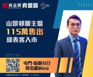 陳氏指,新買家為綠表客,早前經利嘉閣真盤源平台聯絡代理,得知上述銀主盤放售。經了解後,客人認為單位間隔方正實用,加上價格符合預算,遂決定入市,並以115萬元(未補地價)成交,折合實用面積呎價約3,018元。