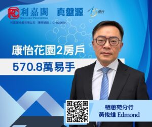 利嘉閣地產康怡區助理營業董事丁培鴻(Sam)稱,栢蕙苑分行高級客戶董事黃俊雄(Edmond)新近促成鰂魚涌康怡花園F座低層11室的二手成交個案,單位實用面積約522方呎,採2房間隔,外望開揚內園景。