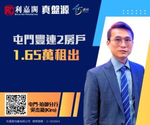 利嘉閣地產屯門-珀御分行高級經理陳志偉(Joe)稱,該行物業顧問吳杰龍(Kiro)最新促成屯門豐連1座中層B室的二手租賃成交個案,單位實用面積約511方呎,屬2房間隔,外望開揚景觀。
