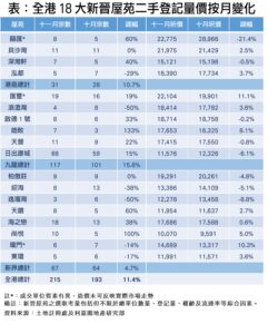 陳海潮指出,本月中旬不少一手新盤集體重啟推售,分薄市場焦點及購買力,令二手市場受壓。十二月為樓市的傳統淡月,加上港銀沒有跟隨美國進行第三次減息;但現時樓價升勢持續,加快買家入市步伐,冀十二月的18大新晉屋苑二手登記可於210宗的高位「企穩」維持。