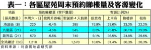 按地區劃分,港島、九龍及新界三區指標屋苑的周末預約睇樓量全線回落,其中新界區21個指標屋苑於本周末暫錄570組客戶預約睇樓,按周減少6.6%,而四天長假期則約有740組客人。利嘉閣地產大圍區高級區域董事黃萬盛表示,雖然本月至今沙田第一城錄約17宗成交、幾乎追平上月成交量,但表現仍屬一般。而聖誕節為港人傳統旅遊旺季,區內準買家和業主亦短休應節,下半月的成交有所放緩,連帶沙田第一城本周末預約睇樓量按周減少。他補充,新界東短期內會有大型新盤登場,相信屆時會搶佔市場焦點,令二手市場受壓。