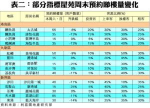 港島區方面,8個指標屋苑本周末暫錄220組客戶預約睇樓,按周減少6.4%,而四天長假期則約有285組客人。利嘉閣地產康怡區助理營業董事丁培鴻表示,過去兩周太古城樓市表現不俗,大單位成交佔比高;而業主收窄議價空間,部分買家擔心遲買會更貴,趕在年尾前入市。本周末太古城預約睇樓人數有減少,主因是區內盤源未能及時補充,亦有部分樓盤業主外遊而無法安排睇樓。