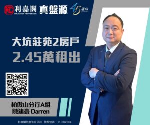 利嘉閣地產北角及北半山高級分區董事梁啟豪(Ken)稱,柏傲山分行A組客戶董事陳建豪(Darren)近日促成大坑莊苑高層C室的二手租賃成交個案,單位實用面積約413方呎,採2房間隔,外望開揚景觀。