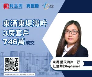 利嘉閣地產東涌-藍天海岸一行高級聯席董事劉景駿(Edward)稱,該行高級客戶董事江金華(Stephanie)日前促成東涌東堤灣畔2期5座中層H室的二手成交個案,單位實用面積約772方呎,屬3房1套間隔,外望開揚景觀。