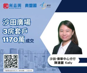 利嘉閣地產沙田-偉華中心分行聯席董事李偉佳(Michael)稱,該行物業顧問陳建麗(Kelly)日前促成沙田廣場金星閣中層2室的二手成交個案,單位實用面積約836方呎,屬3房1套間隔,向東南,望河景。