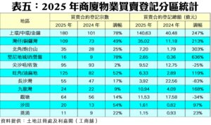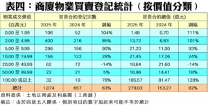 總結2025年全年,商廈整體買賣登記量自2024年的歷史次低水平,一舉彈升衝越千宗,共錄得1,074宗,較前年的657宗急漲63%,除扭轉連跌3年的命運外,更創近4年新高,反映商廈一洗頹風,擺脫近年低迷悶局。至於商廈買賣合約登記總值去年同步急增82%,勁錄279.03億元,主因年內亦不乏十億元以上計的巨額商廈登記。