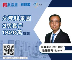 利嘉閣地產新界豪宅-沙田豪宅分行首席聯席董事歐陽肇青(Sunny)稱,該行最新促成火炭駿景園8座高層A室的二手成交個案,單位實用面積約1,039方呎,屬3房1套連工人套房間隔,望山景。