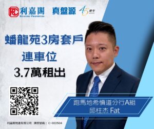 利嘉閣地產東半山跑馬地希慎道分行A組分區董事梁國樑(Stephen)稱,該行客戶董事邱柱杰(Fat)近日促成跑馬地蟠龍苑1座高層B室連車位的二手租賃成交個案,單位實用面積約854方呎,現採3房1套間隔,外望開揚景觀。