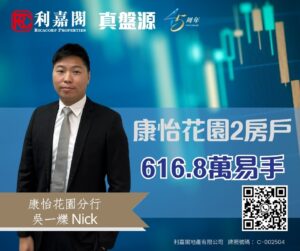 陳氏表示,新買家為用家,早前經利嘉閣真盤源平台搵樓,見上述放盤即約代理睇樓。客人心儀單位附帶雅致裝修,間隔合用,加上屋苑地理位置旺中帶靜,區內生活配套齊全,且售價相宜,睇樓後即與業主進行洽購,終以616.8萬元成交,折合實用面積呎價約11,771元。