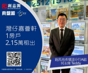 利嘉閣地產東半山跑馬地希慎道分行A組分區董事梁國樑(Stephen)稱,該行客戶主任何永輝(Teddy)近日促成灣仔嘉薈軒中層5室的二手租賃成交個案,單位實用面積約407方呎,採1房間隔,外望開揚景。
