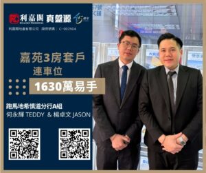 利嘉閣地產東半山跑馬地希慎道分行A組分區董事梁國樑(Stephen)稱,該行高級客戶董事楊卓文(Jason)客戶主任何永輝(Ted­dy)新近促成東半山嘉苑B座中層4室連車位的二手成交個案,單位實用面積約1,158方呎,採3房1套間隔,外望開揚山景。