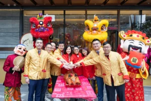 由嘉華國際、會德豐地產及中國海外合作發展的啟德現樓新盤「啟德海灣」,今日(22日)舉辦醒獅新春團拜,邀請了一眾合作伙伴親臨「啟德海灣」,並主禮切金豬儀式,和一眾代理朋友拜年賀福,共慶新禧。