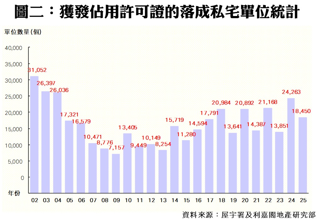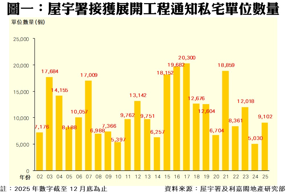 2025年共18,450伙落成 達預測88% 全年私宅動工9,102伙 按年增近81%