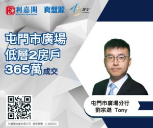 利嘉閣地產屯門-屯門市廣場分行高級市務經理黃瑞雯(Sammi)表示,春節假期過後,二手樓市逐步升溫,該行客戶董事劉宗澔(Tony)連環促成屯門市廣場的二手成交個案,其一成交為2座低層E室,單位實用面積約325方呎,屬2房間隔,望樓景。