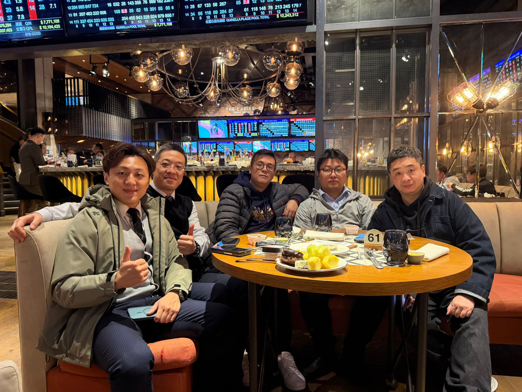 同時,Eric感恩公司的裁培;亦感謝上司利嘉閣地產董事徐志華(Kent)及Edmond的提攜。他又指,去年做出好成績,旗下4位主管,包括碧海藍天分行高級聯席董事邱家仁(Roy)、昇悅居分行高級聯席董事李啟昌(Eddie)、宇晴軒分行高級聯席董事陳炳南(Bosco)及愛海頌分行高級聯席董事林海鈞(Lamken)實在功不可沒。適逢馬年到來,Eric就率領4位主管到沙田馬場餐廳「喜馬當先」,品嚐高質晚餐慶功,齊齊預祝2026馬年四小龍區「喜馬當先,馬到功成」,大家士氣高昂,舉杯暢飲。