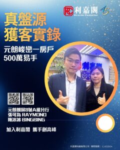 利嘉閣地產元朗-朗屏8A組分行高級聯席董事吳紫旭(Yoyo)表示,該行高級客戶董事張可為(Ray­mond)及高級客戶經理陳冰冰(Bing­bing)共同促成元朗峻巒1C期PARK YOHO Sicil­ia 1A座中層E室的二手成交個案,單位實用面積約449方呎,屬一房連開放式廚房間隔,外望濕地公園景觀。