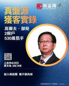 利嘉閣地產上水中心分行首席聯席董事黃靜顏(Yen)表示,該行客戶經理黃文奇(Jackie)日前促成上水高爾夫.御苑7座高層F室的二手成交個案,單位實用面積約487方呎,屬2房連開放式廚房間隔,向東南,外望開揚景致。