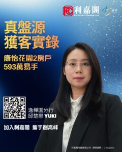 利嘉閣地產逸樺園分行聯席董事吳玉蘭(Hody)稱,該行客戶經理邱楚戀(Yuki)新近促成鰂魚涌康怡花園D座低層6室的二手成交個案,單位實用面積約509方呎,採2房間隔,望山景。