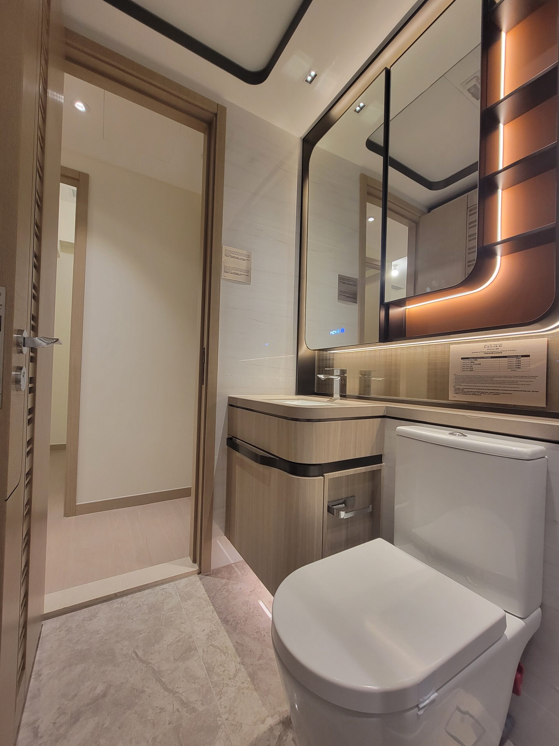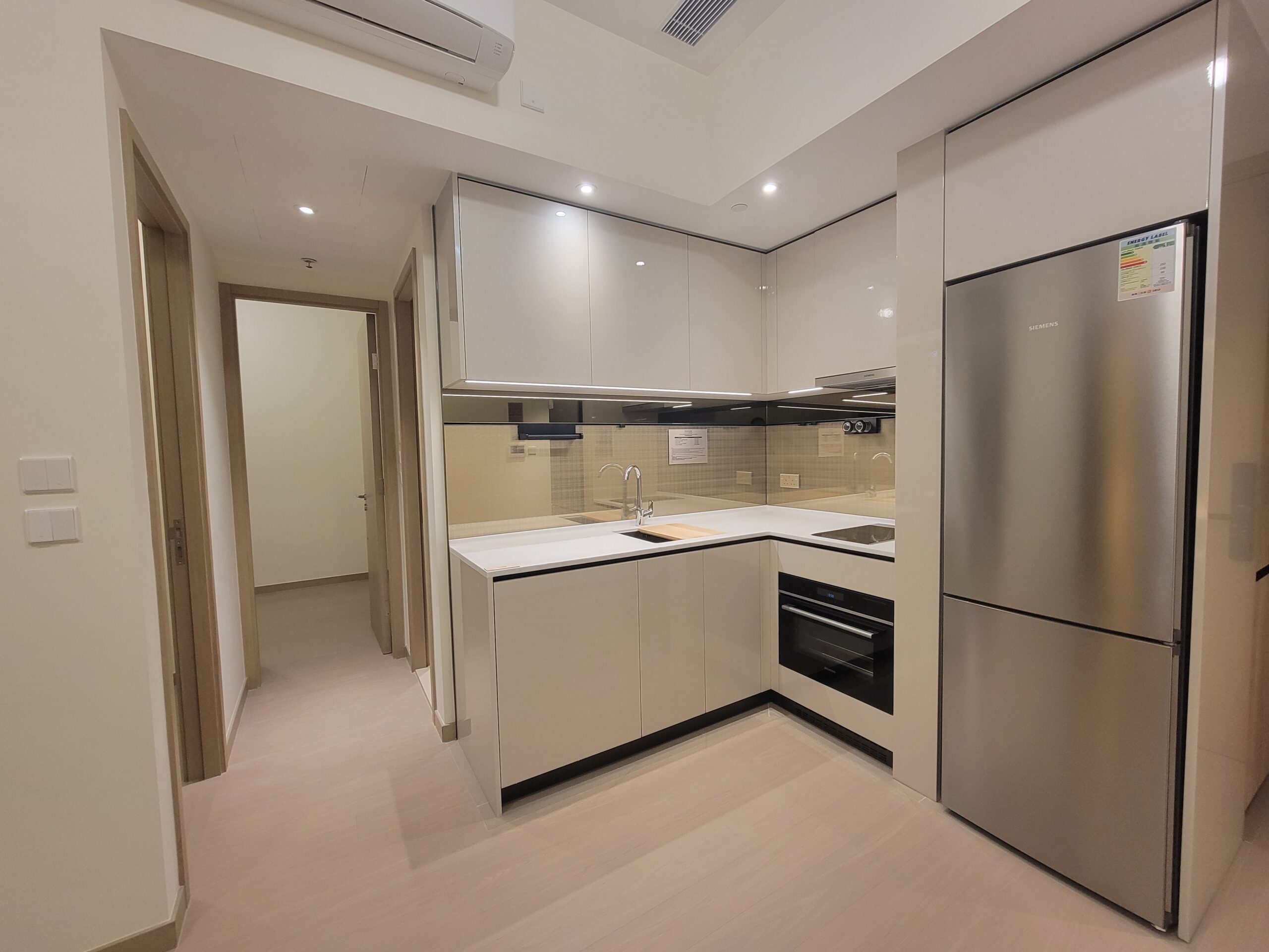 開放式廚房選用德國品牌SIEMENS一系列家電,包括抽油煙機、電磁煮食爐、蒸焗爐、雪櫃及二合一洗衣乾衣機,設備一應俱全,住戶可盡享入廚樂趣。單位浴室設有智能鏡櫃,鏡子提供除霧功能,設計方便貼心。